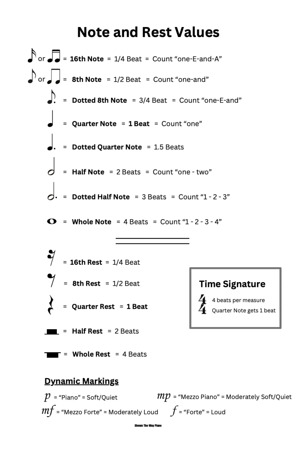 Decode the music staff, note names, rhythm values, and basic counting so you can read any beginner score.